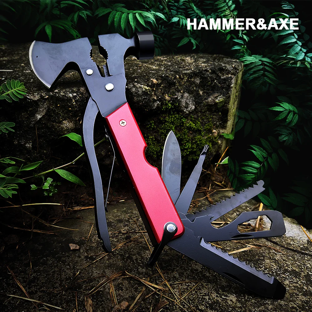 Outdoor Camping Wild Axe Multi Tools Heavy Duty Twin Axe/Hammer Hatchet Folding Knife Survival Mult