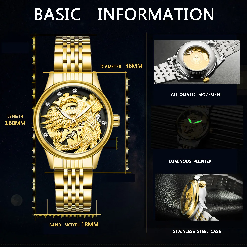 Women Watches Skeleton Phoenix Mechanical Watch Ladies wristwatches Automatic Winding Waterproof TE