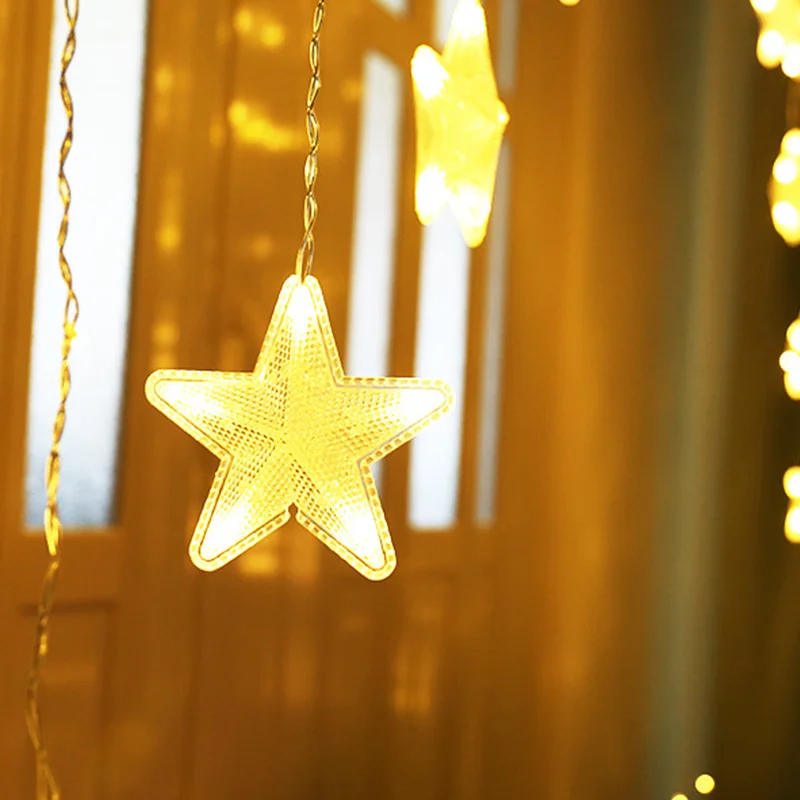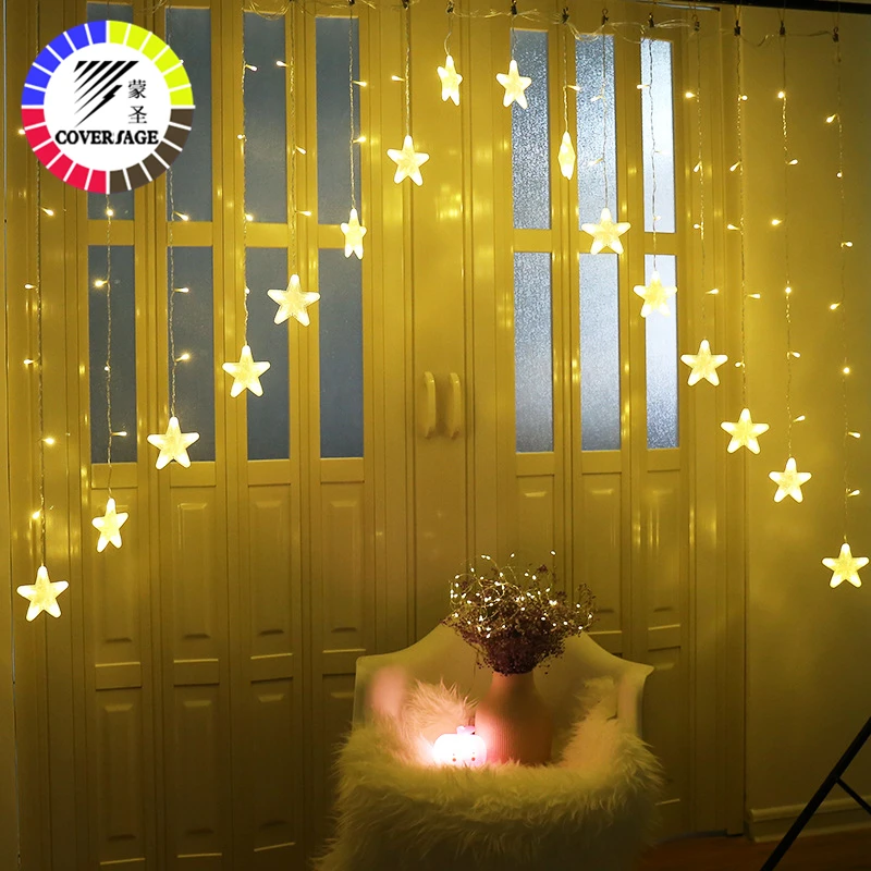Coversage Christmas Star Curtain Garlands Fairy Led String Lights Wedding Curtain Outdoor Decorativ