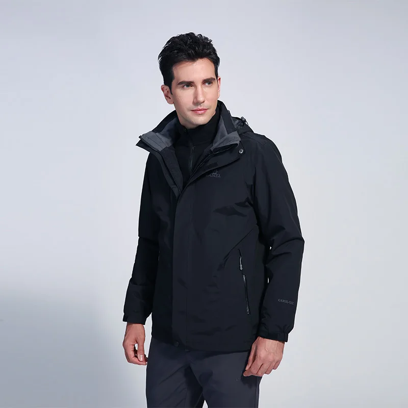 CAMEL Men Women 3 in 1 Outdoor Hiking Jacket Solid Color Thermal Fleece Inner Waterproof Windbreake