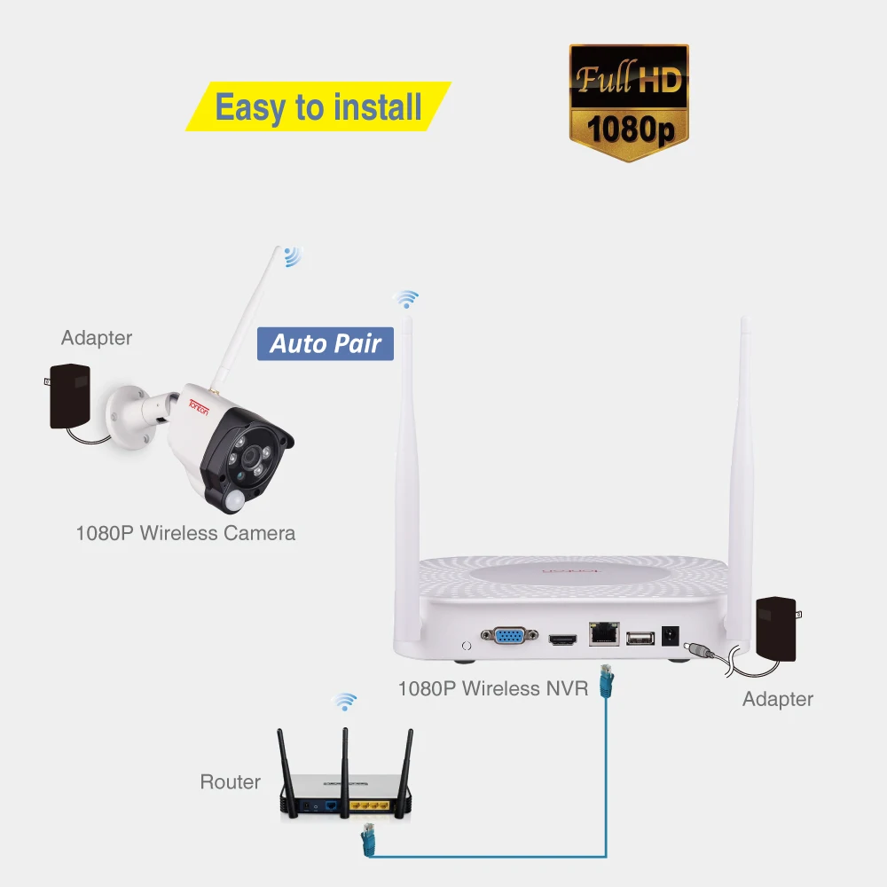 BEST QUALITY Tonton 8CH 1080P NVR Kits Audio Recording HD Home Security Wireless Outdoor IP Camera CCTV WIFI Vid